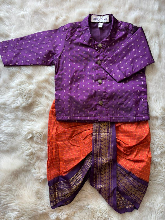 Wine Kurta with Rusty checked Dhoti ethnic wear for baby boy