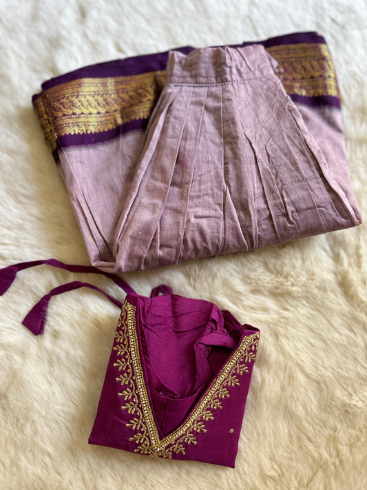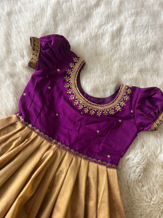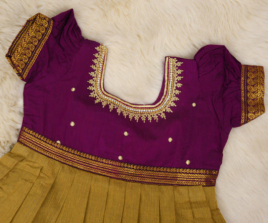 Wine with lavender Embroidered V Neck Langa Blouse Ethnic Wear for baby girl