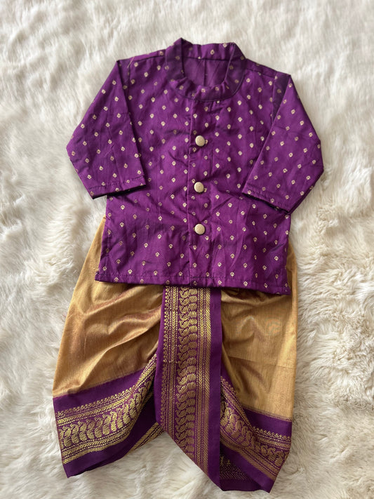 Wine with lavender - Angrakha kurta dhoti ethnic wear for baby boy
