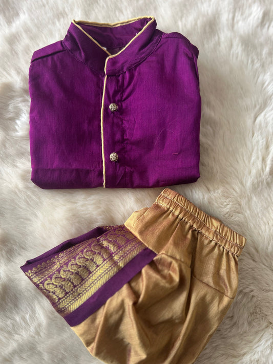 Wine with golden hue Cotton Silk Baby Boy Kurta Dhoti Set