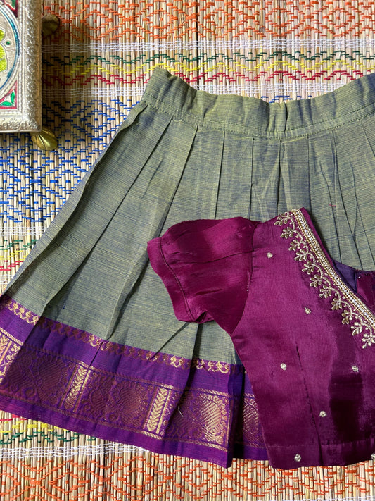 Wine with grey Embroidered V Neck Langa Blouse Ethnic Wear for baby girl