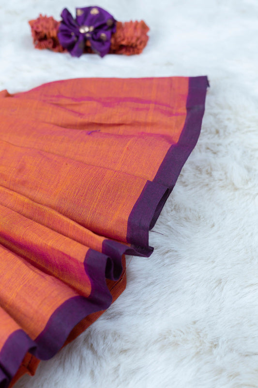 Wine with Khadi Orange (Vintage Bow) - Kanchi Cotton Silk South Indian Ethnic Frock for Baby Girl