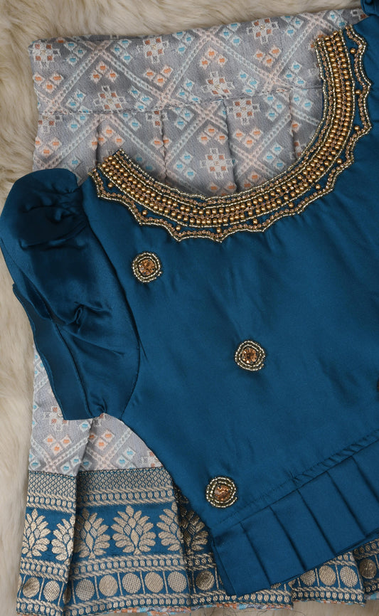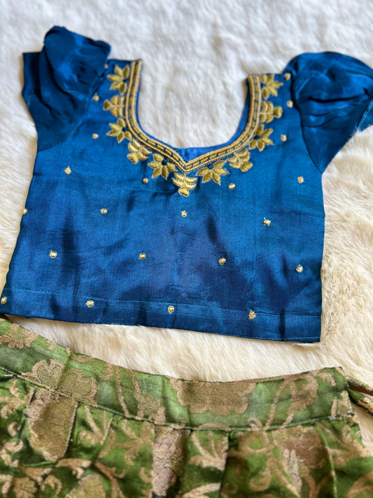 Blue with mehendi Green - Langa Blouse Ethnic Wear for Baby Girl