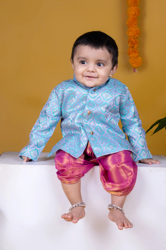 Blue with rose pink kurta dhoti ethnic wear for baby boy