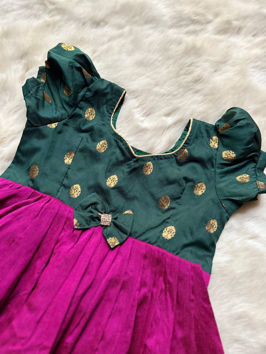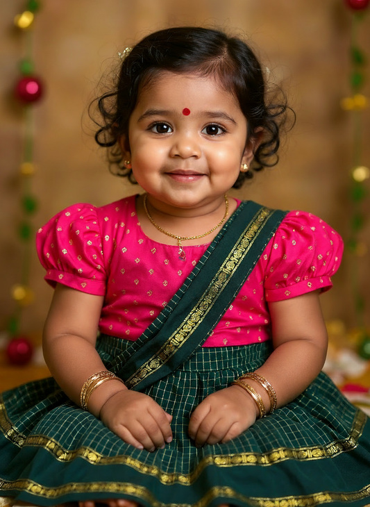 Bottle green and pink - Ready to wear muttukattam saree for kids Ethnic wear for baby girl