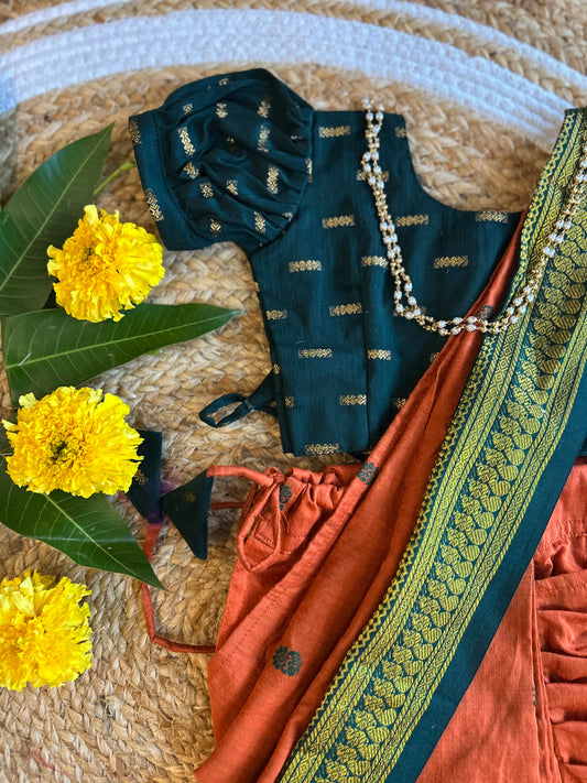 Bottle green and orange - Ready to wear saree for kids Ethnic wear for baby girl