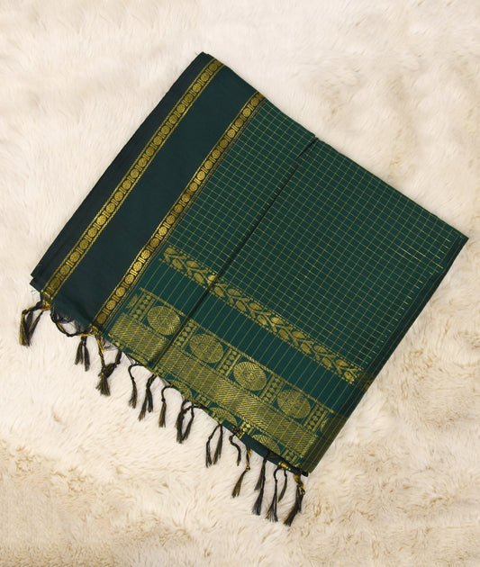 Bottle Checked Green Premium Cotton Silk Saree with Contrast Blouse