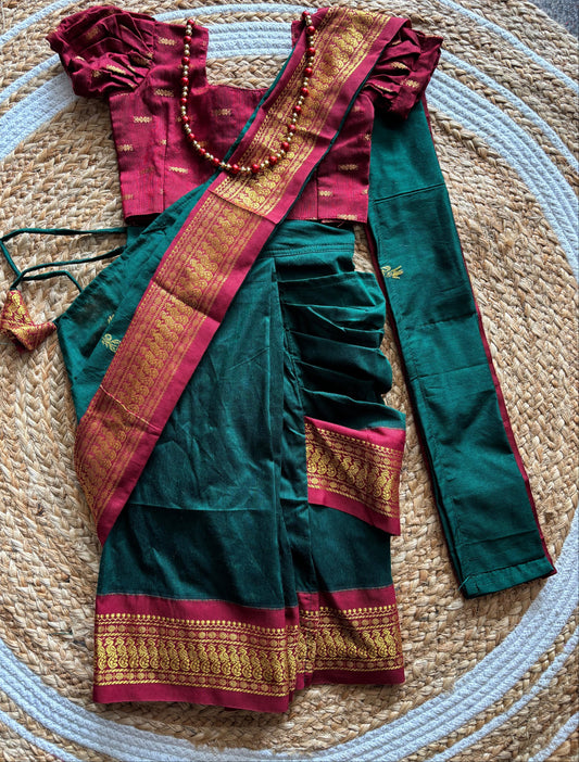 Bottle green and maroon - Ready to wear muttukattam saree for kids Ethnic wear for baby girl