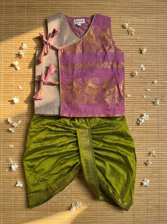 Onion pink Angrakha Kurta with dhoti - Cotton Silk ethnic wear for baby boy