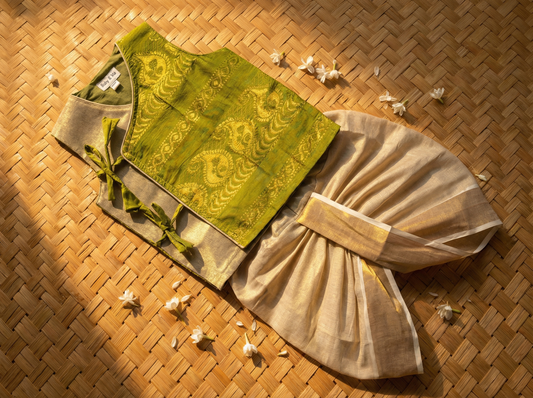 Parrot green Angrakha Kurta and Gold Dhoti for Baby Boy – Sleeveless Ethnic Wear