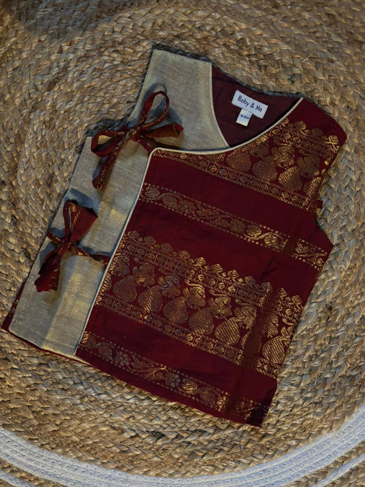 Maroon angrakha cotton silk kurta top baby boy ethnic wear