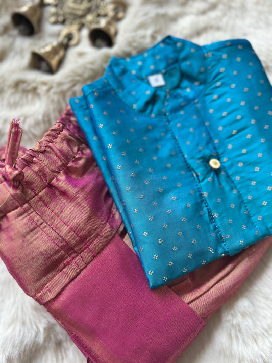 Ananda blue with rose pink shade kurta dhoti ethnic wear for baby boy