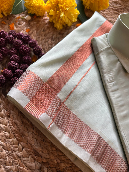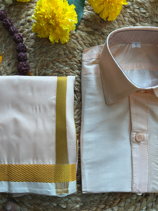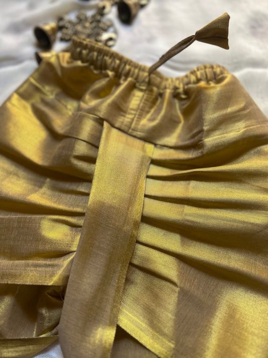 Golden hue semi silk kurta baby boy ethnic Kurta with green dhoti set