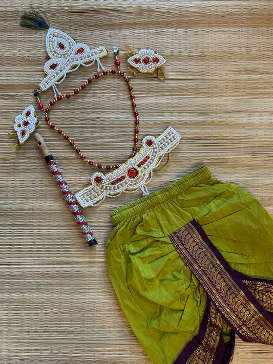 Krishna Dress Set for Baby Boy | Janmashtami dress | Krishna dress for newborn | Green with wine