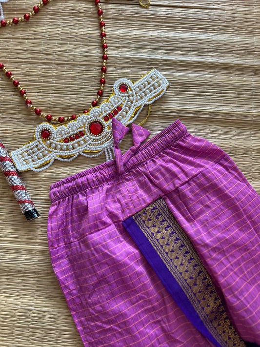 Krishna Dress Set for Baby Boy | Janmashtami dress | Krishna dress for newborn | Pink with purple dhoti