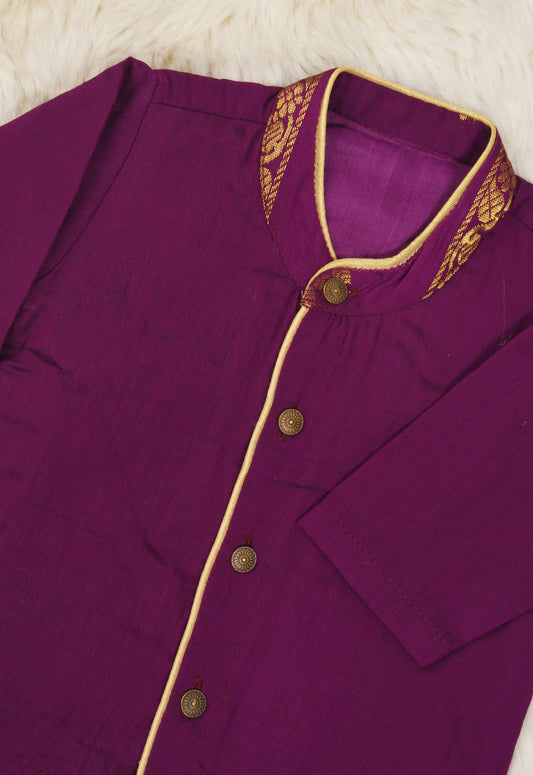 Purple with Green checked kurta dhoti baby boy ethnic wear