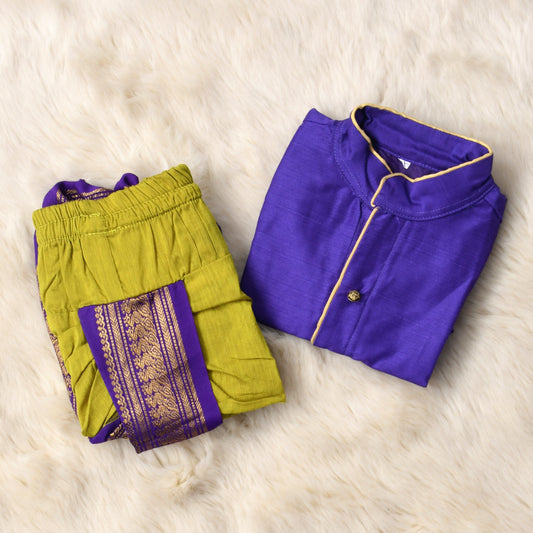 Purple and lime green kurta dhoti baby boy ethnic wear