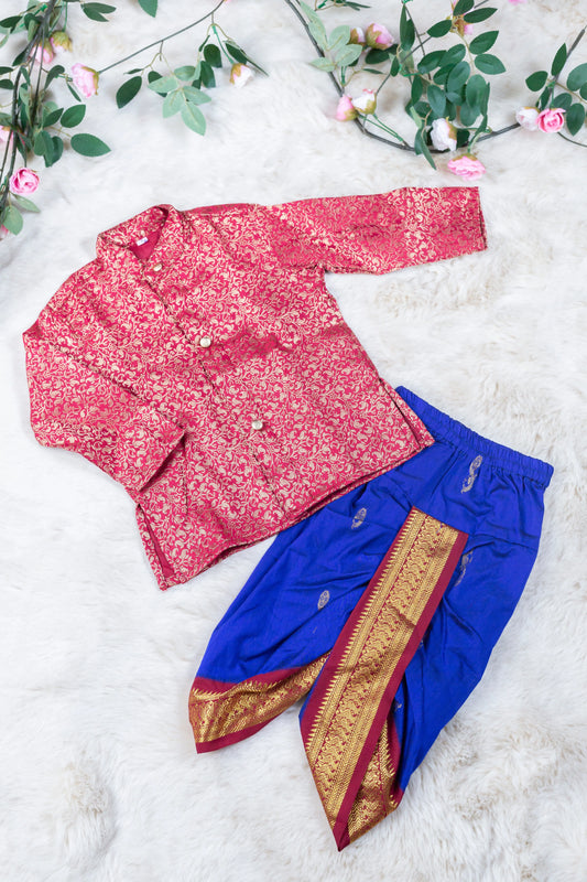 Maroon with royal blue kurta dhoti ethnic wear for baby boy