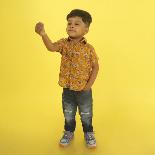 Indian print mustard yellow - casual, comfortable, breathable, soft organic 100% cotton shirts for baby boy