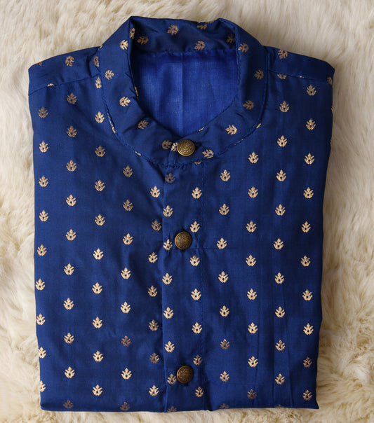 Navy Blue Semi silk kurta baby boy ethnic top wear