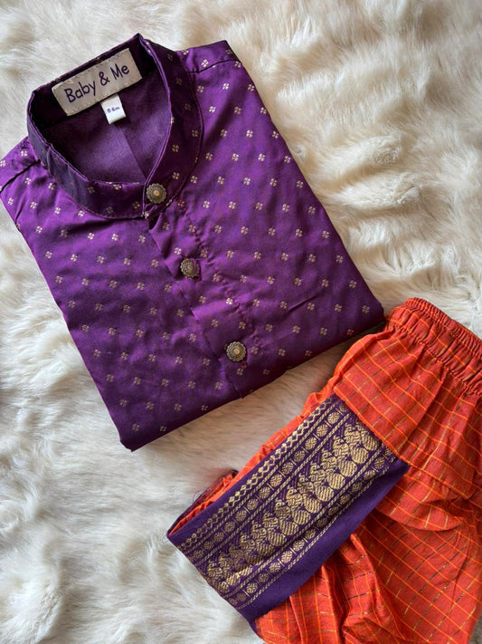 Wine Butta with Rusty Orange kurta dhoti baby boy ethnic wear