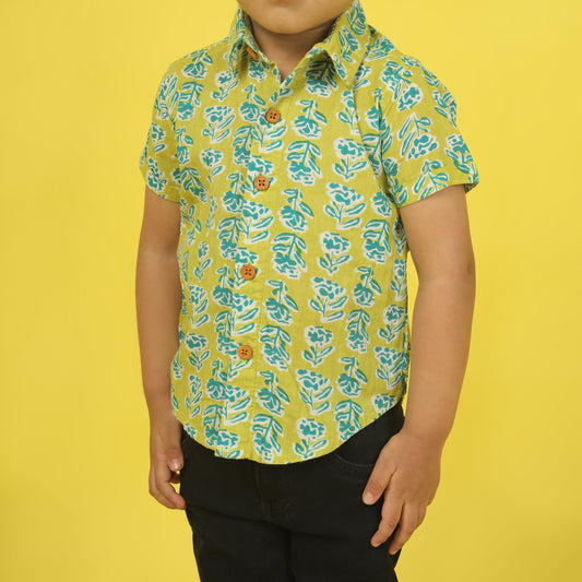 Indian print fresh green - casual, comfortable, breathable, soft organic 100% cotton shirts for baby boy