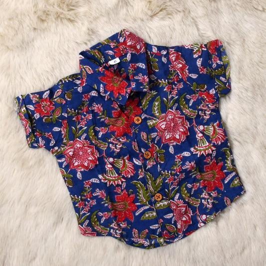 Indian print floral blue - casual, comfortable, breathable, soft organic 100% cotton shirts for baby boy