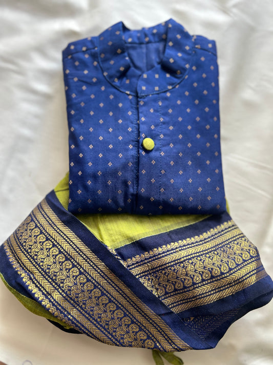 Green & Navy Blue Dhoti Kurta for Baby Boys