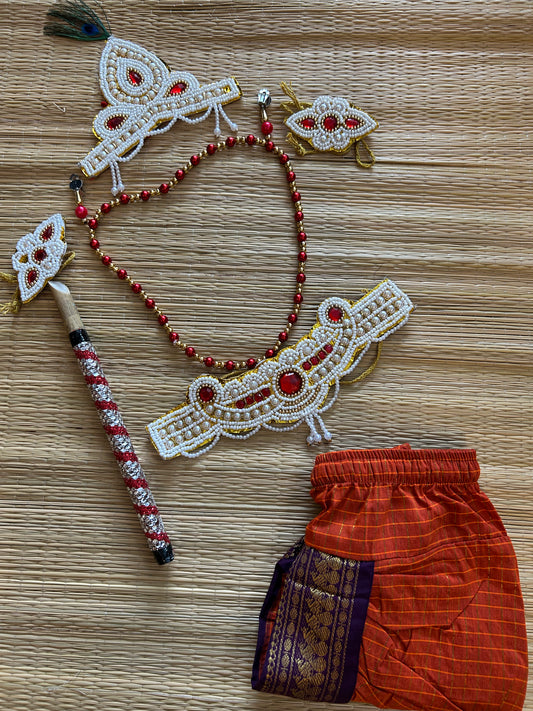 Krishna Dress Set for Baby Boy | Janmashtami dress | Krishna dress for newborn | Rustic orange with wine dhoti