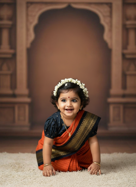 Orange with checked black - Ready to wear saree for kids Ethnic wear for baby girl