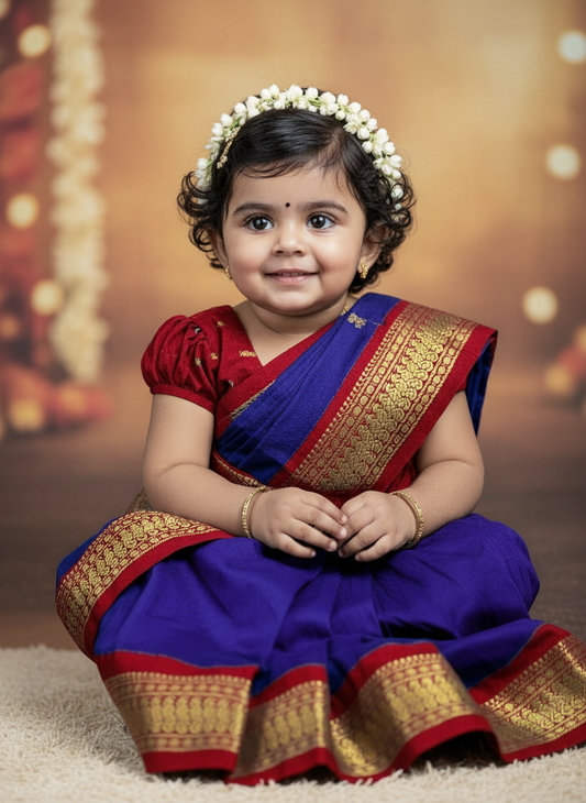 Royal Blue and maroon - Ready to wear muttukattam saree for kids Ethnic wear for baby girl