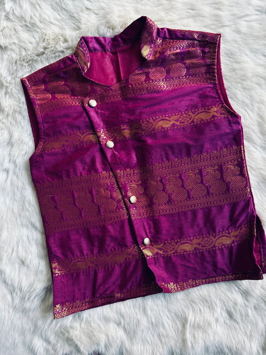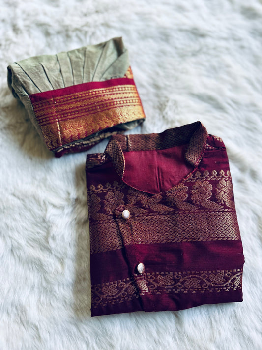 Traditional Indian Handpainted Style wine and lavender Silk Dhoti Kurta for Boy | Ethnic wear for baby boy
