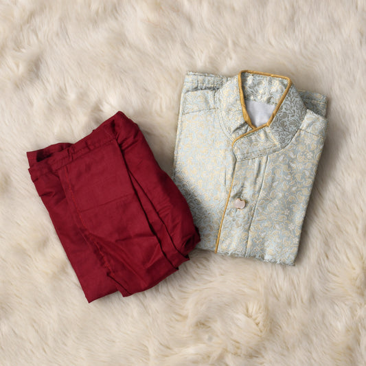 Smokey blue and maroon kurta dhoti baby boy ethnic wear