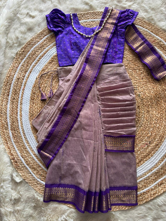Grey with violet - Ready to wear saree for kids Ethnic wear for baby girl
