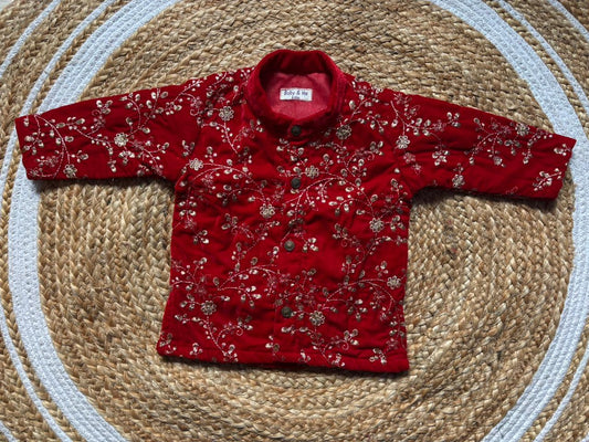 Maroon angrakha cotton silk kurta top baby boy ethnic wear