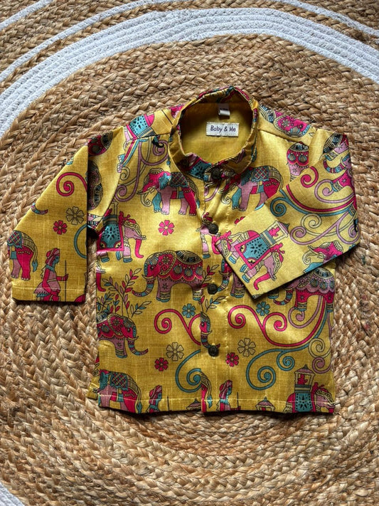 Traditional Yellow Aane Print Kurta for baby boy ethnic top wear
