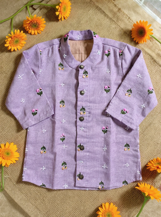 Lavender Linen Kurta for baby boy ethnic top wear
