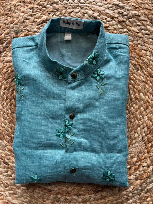 Sky blue Linen Kurta for baby boy ethnic top wear