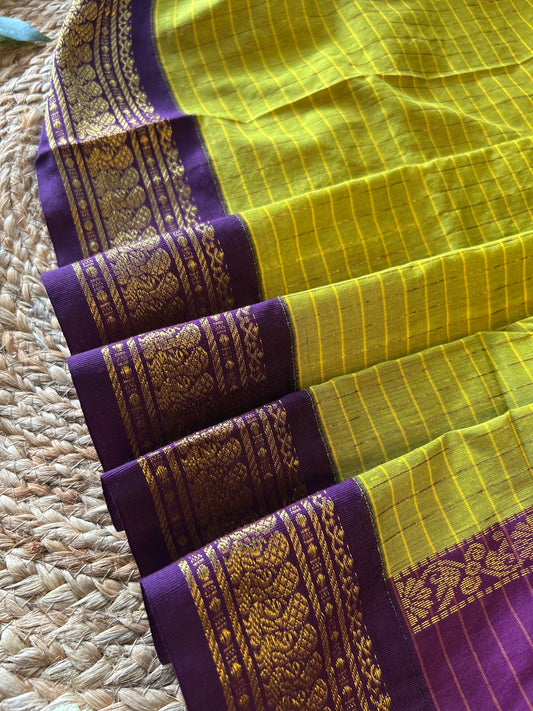 Green and wine - Premium Checked Cotton Silk Saree with Contrast Blouse