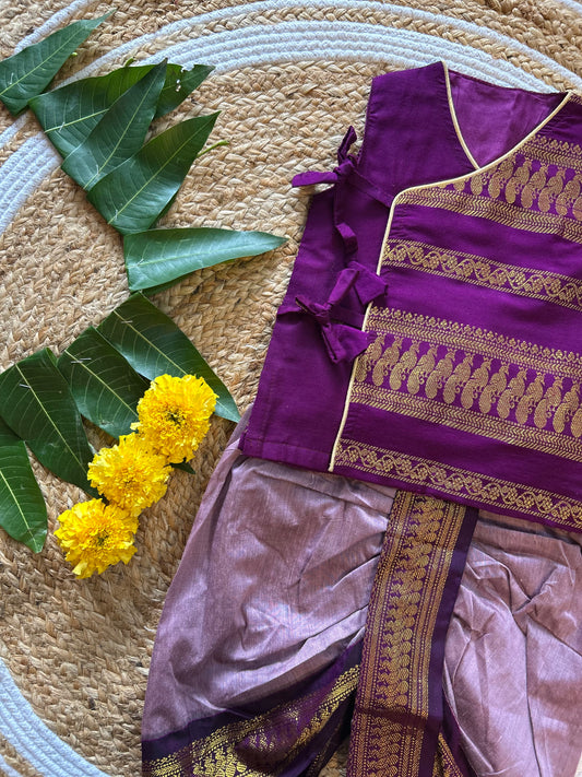 Lavendar and wine - dhoti kurta & saree mom and son combo set