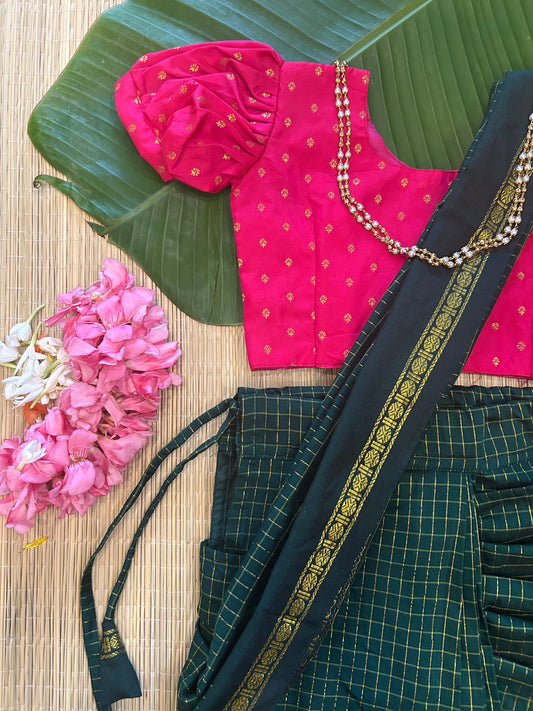 Bottle green and pink - Ready to wear muttukattam saree for kids Ethnic wear for baby girl