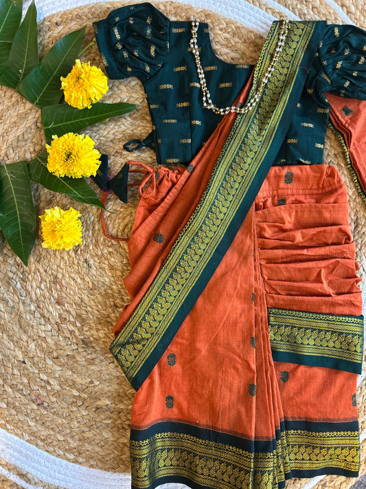Bottle green and orange - Ready to wear saree for kids Ethnic wear for baby girl