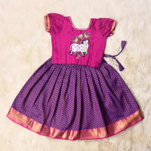 Takshvi - pink and purple traditional langa blouse pattu silk baby girl ethnic wear