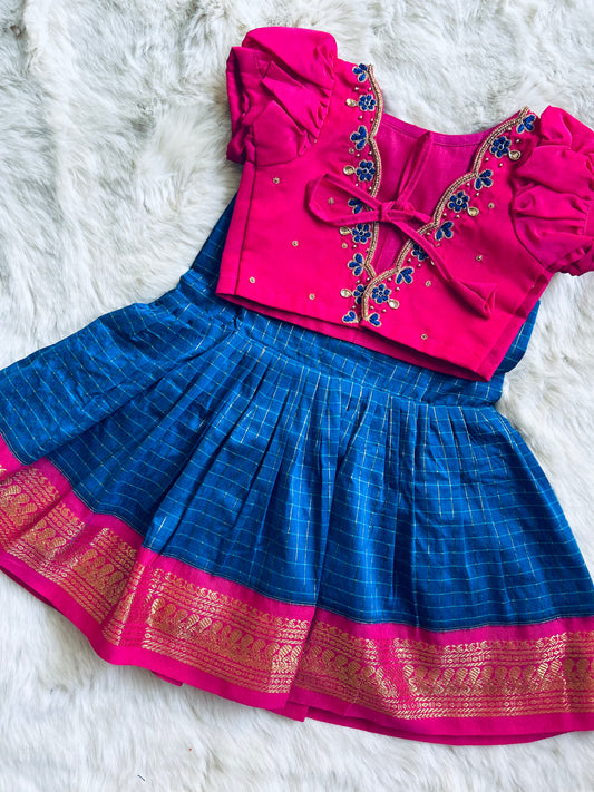 Blue and pink border checked langa jacket ethnic wear for baby girl