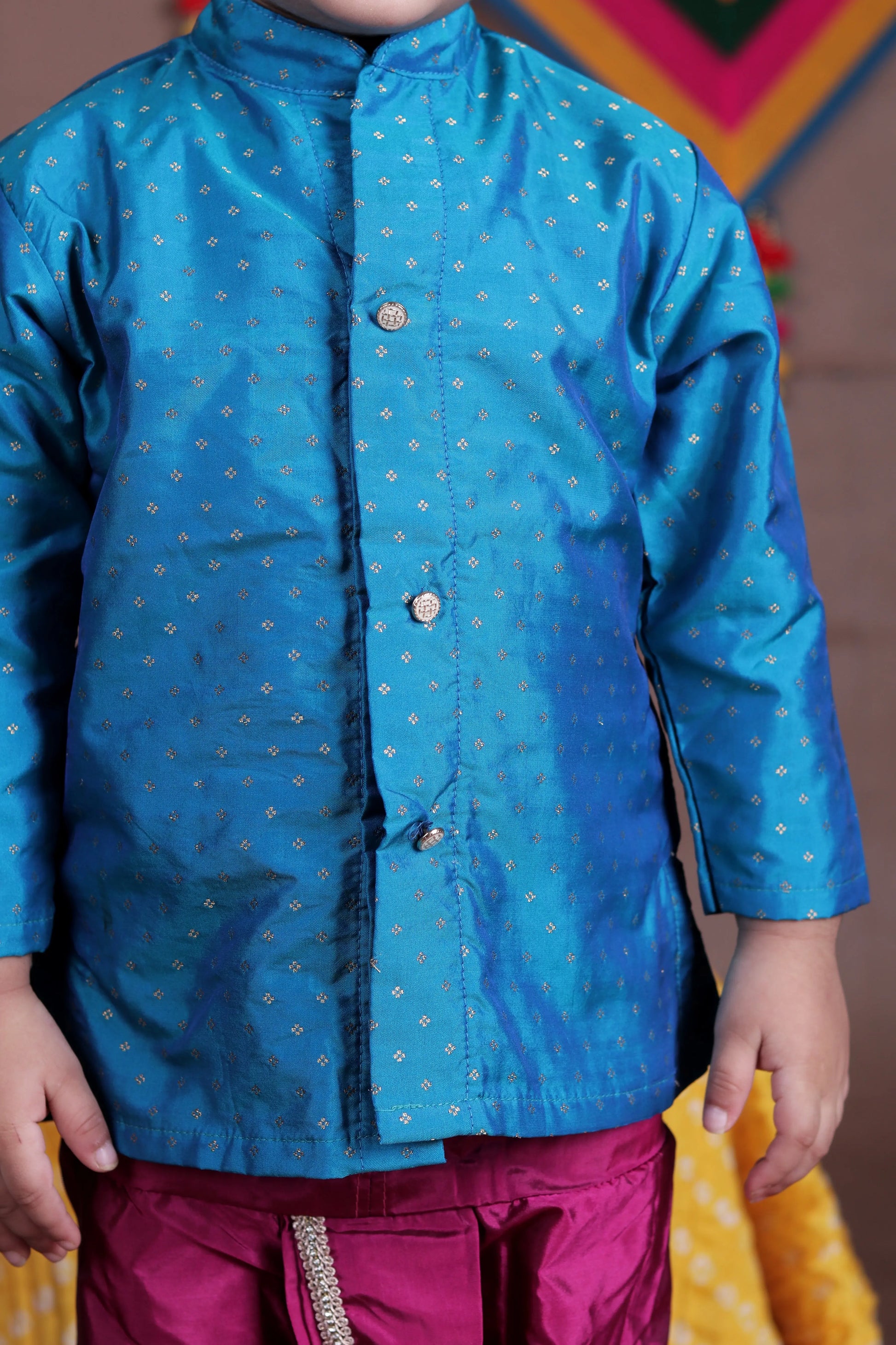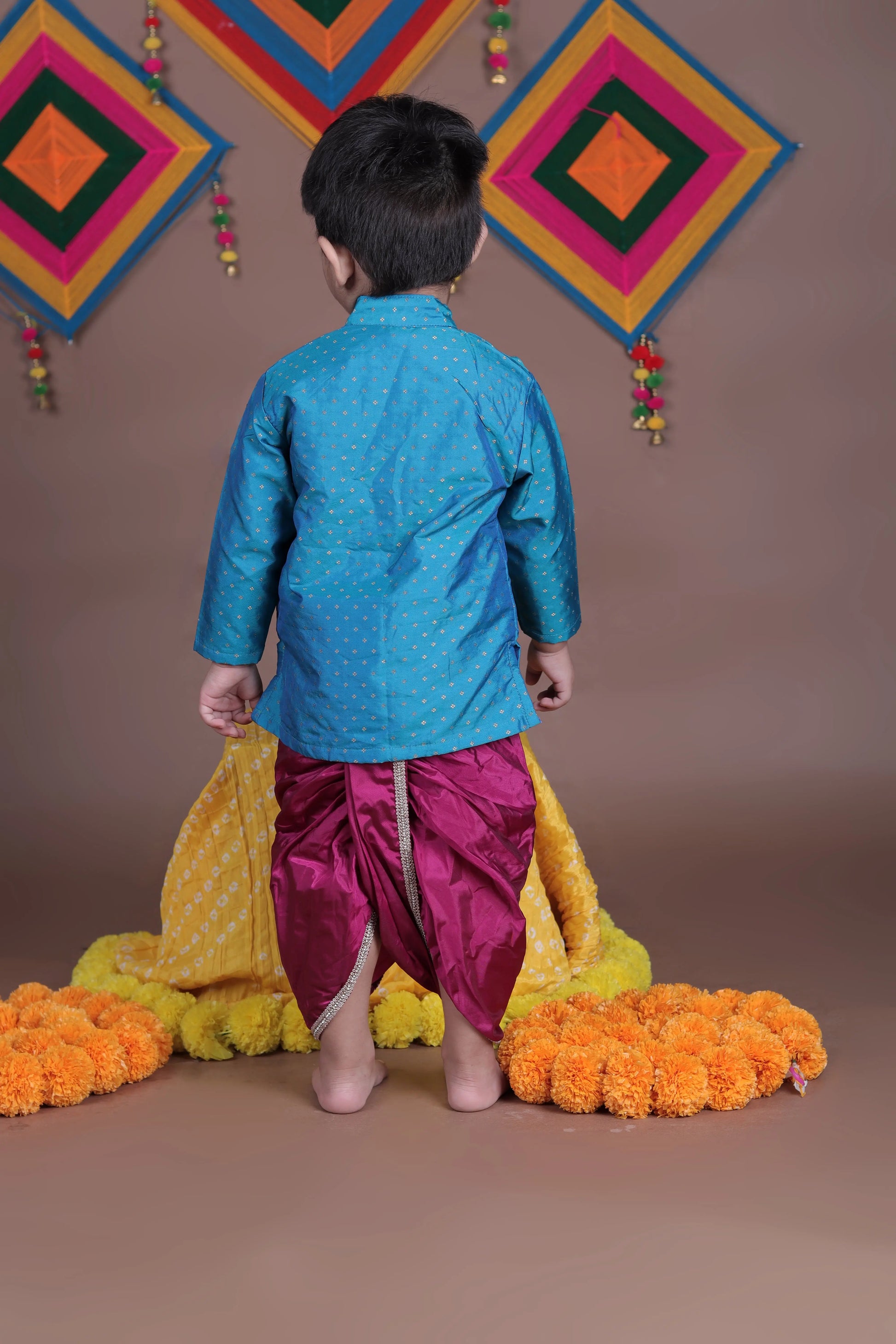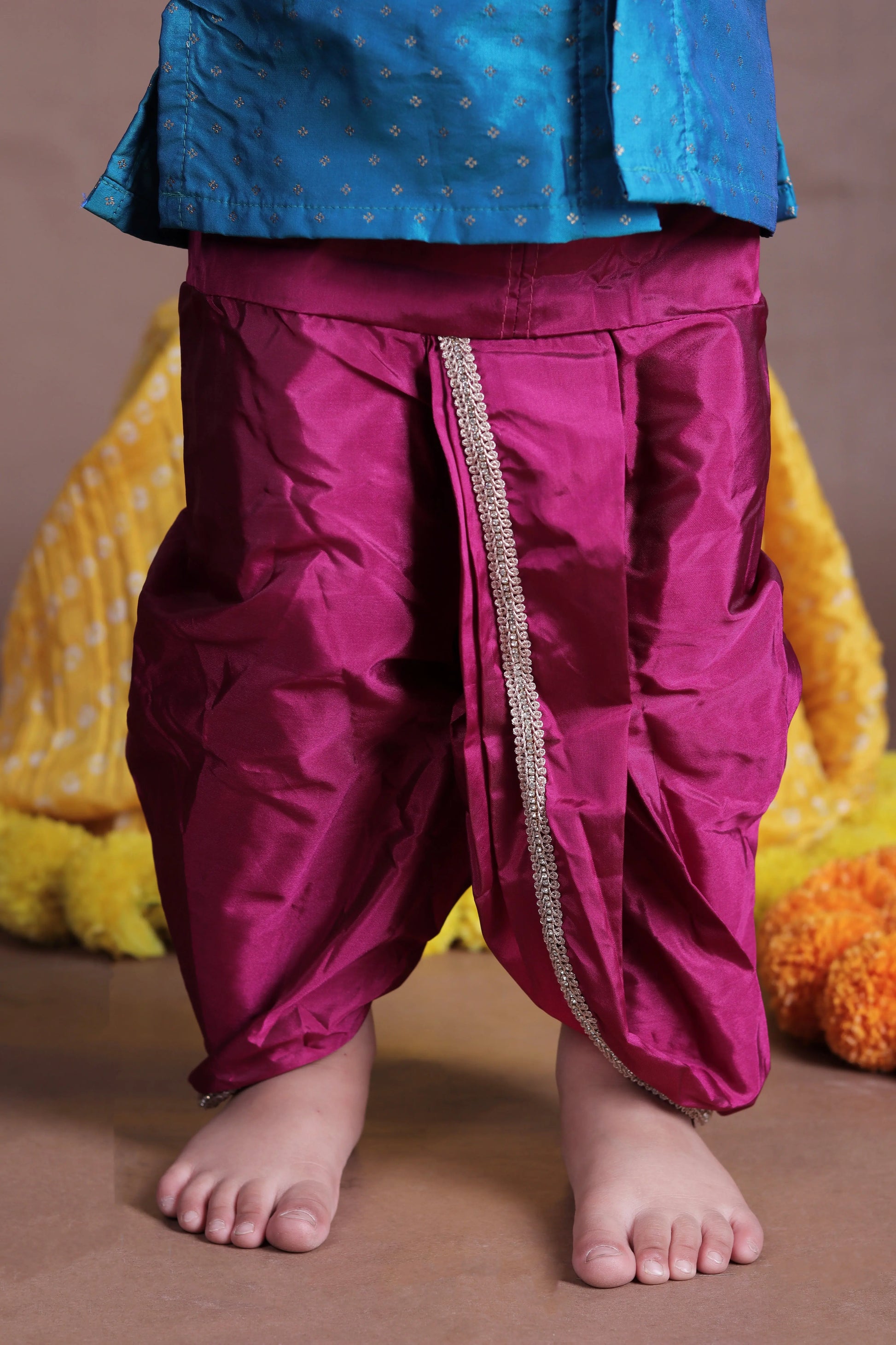 Aqua Blue and Pink Silk kurta dhoti ethnic dress for baby boy