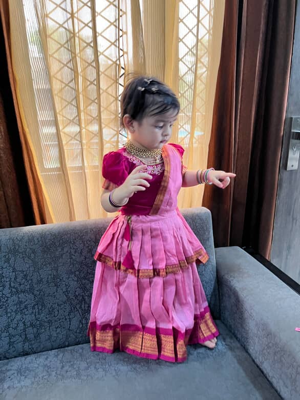 Baby pink and festive pink traditional Ready to wear saree for kids