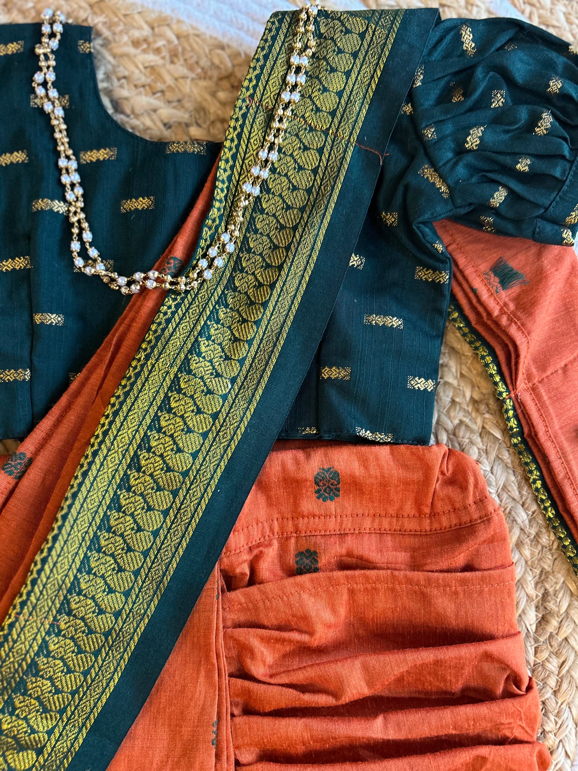 Bottle green and orange - Ready to wear saree for kids Ethnic wear for baby girl