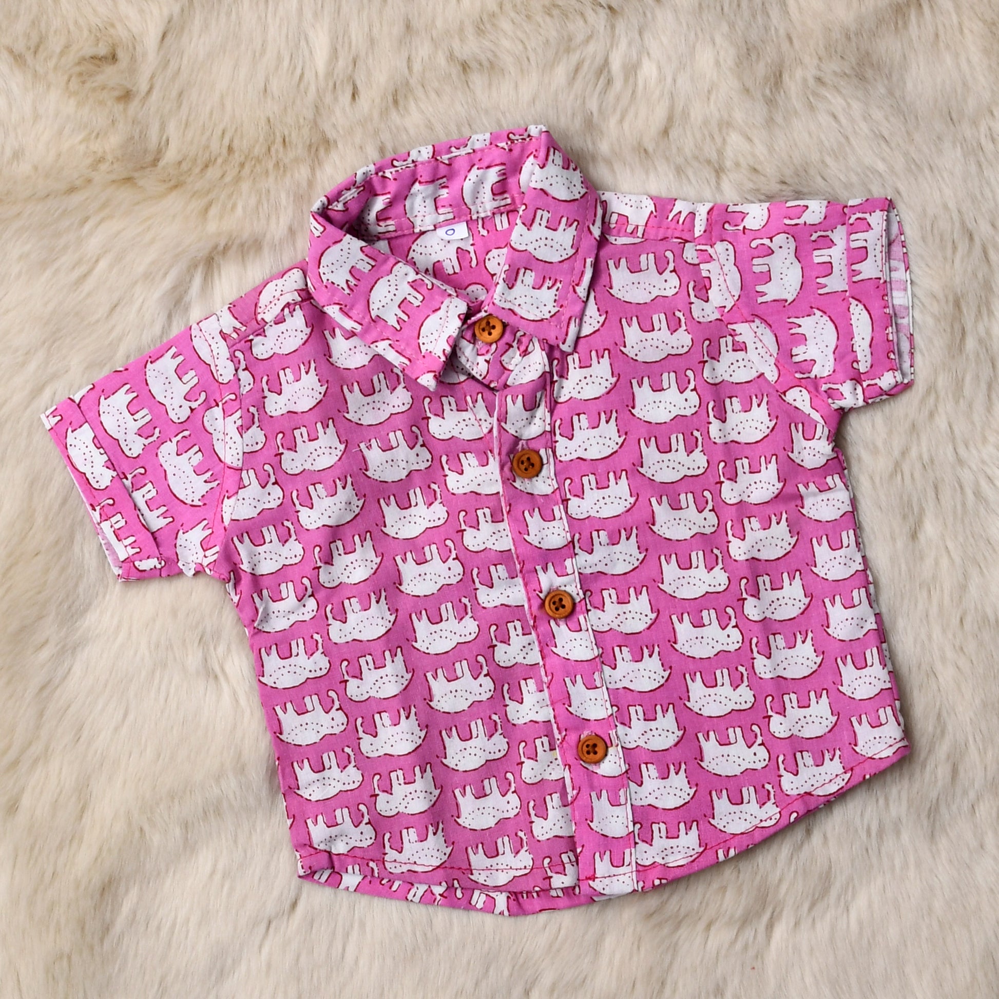 Elephant Indian print on baby pink - casual, comfortable, breathable, soft organic 100% cotton shirts for baby boy
