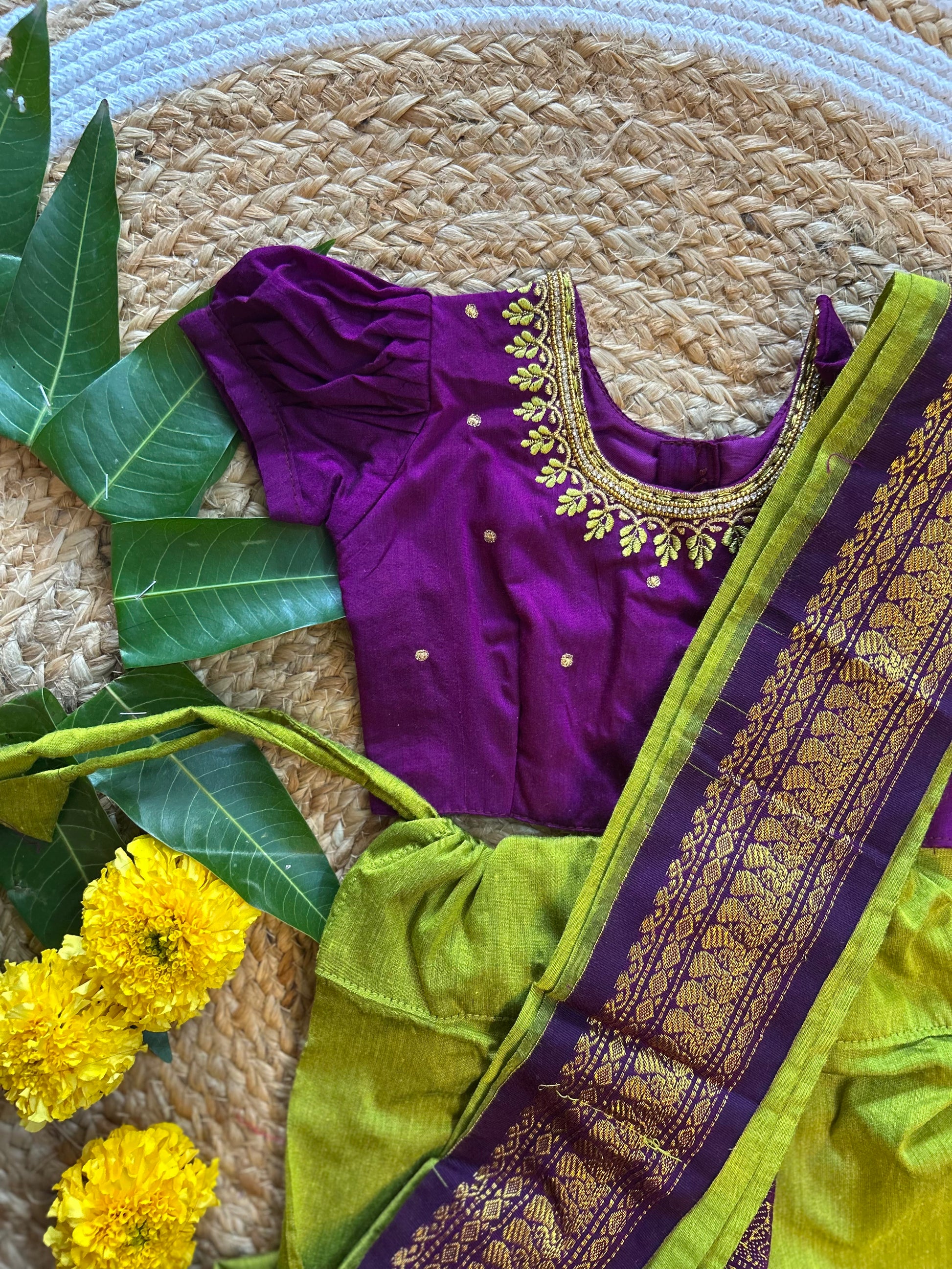 Green and wine - Ready to wear saree for kids Ethnic wear for baby girl