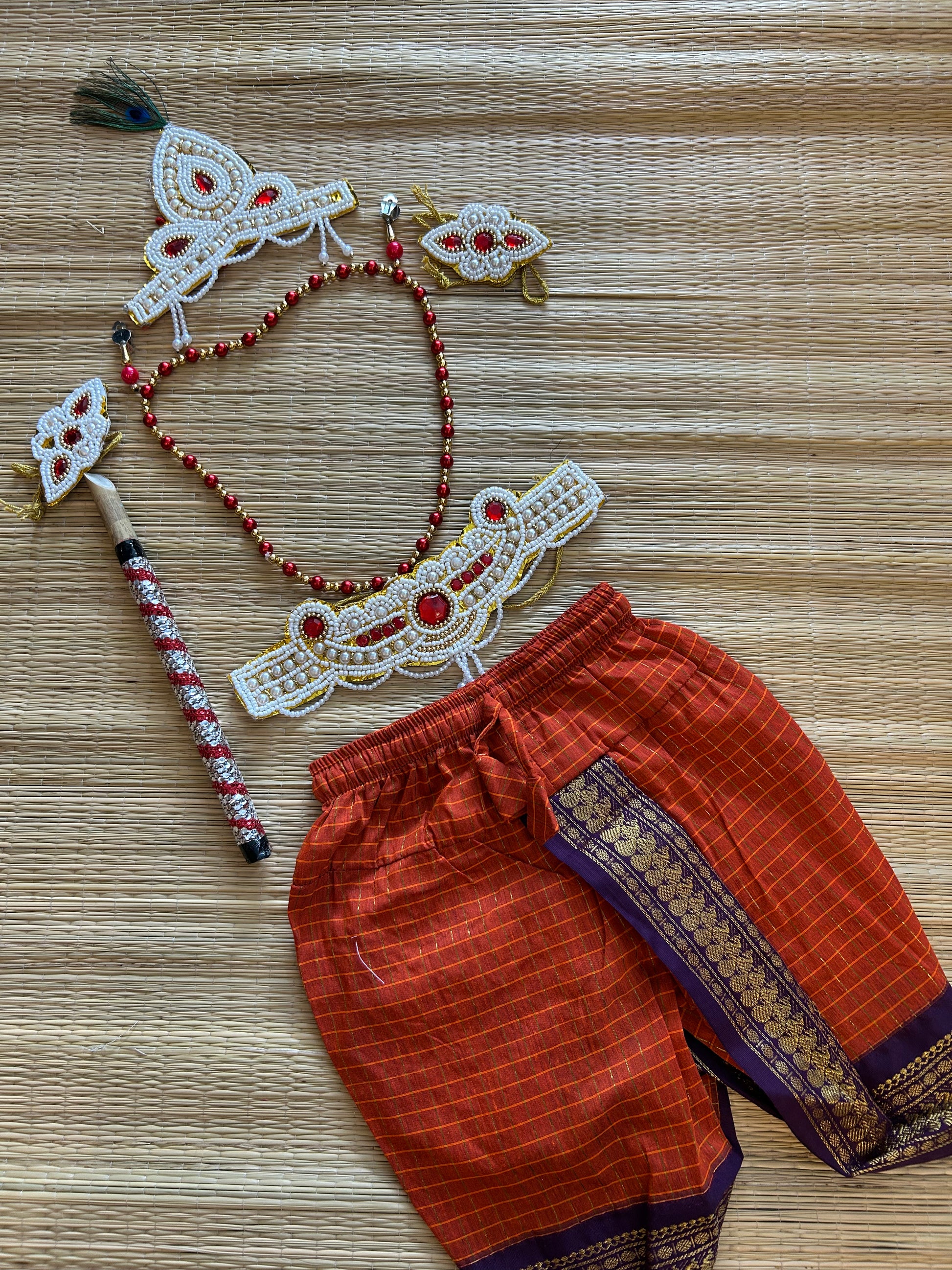Krishna Dress Set for Baby Boy | Janmashtami dress | Krishna dress for newborn | Rustic orange with wine dhoti